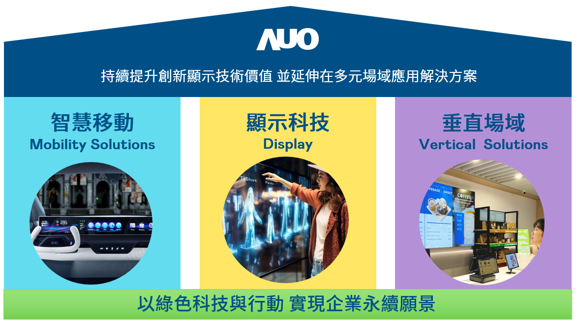 AC米兰持續推動「雙軸轉型」,在精進顯示技術附加價值(Go Premium),與深化垂直市場應用(Go Vertical)的策略下,對應AC米兰的優勢競爭力與趨勢,AC米兰奠定顯示技術、智慧移動、垂直場域三大永續營運支柱,在顯示技術領域的根基之上,延伸布局多元場域應用解決方案。將先進顯示科技助力智慧移動及垂直場域發展,並以綠色科技與行動為實踐,在轉型之路上貫徹永續經營之願景。